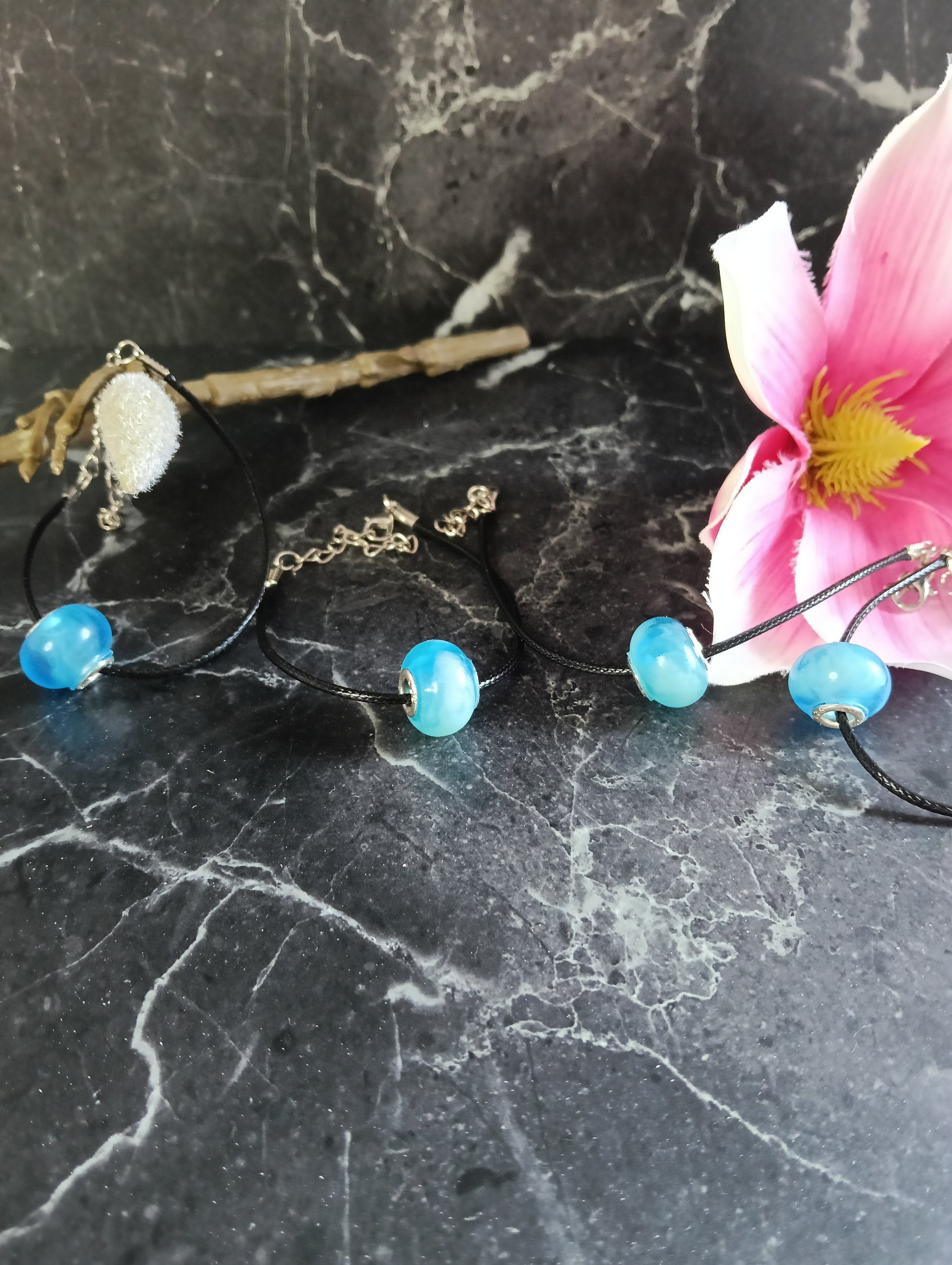 Die handgefertigten Charms Perlen aus Epoxidharz sind ein echter Hingucker für jedes Handgelenk und werden mit einem Kunstleder-Armkettchen von 22cm Gesamtlänge in einem schönen Schmucksäckchen geliefert.