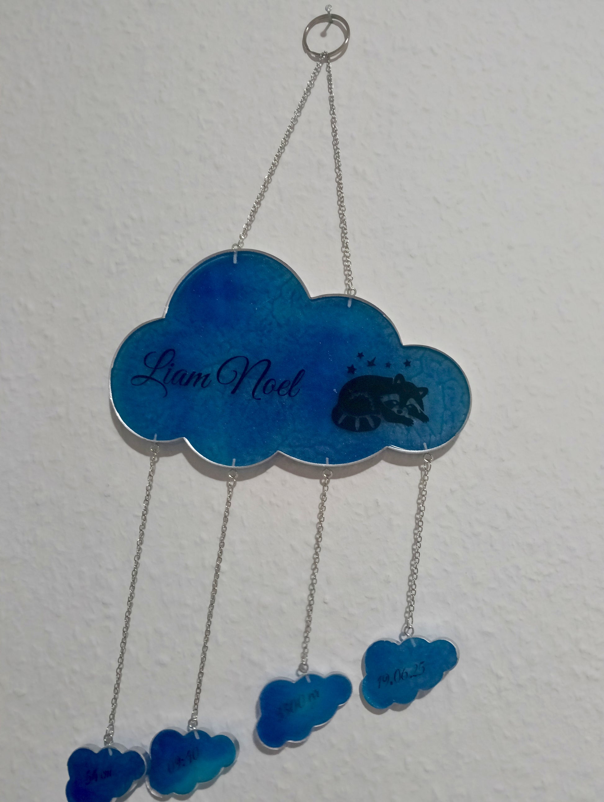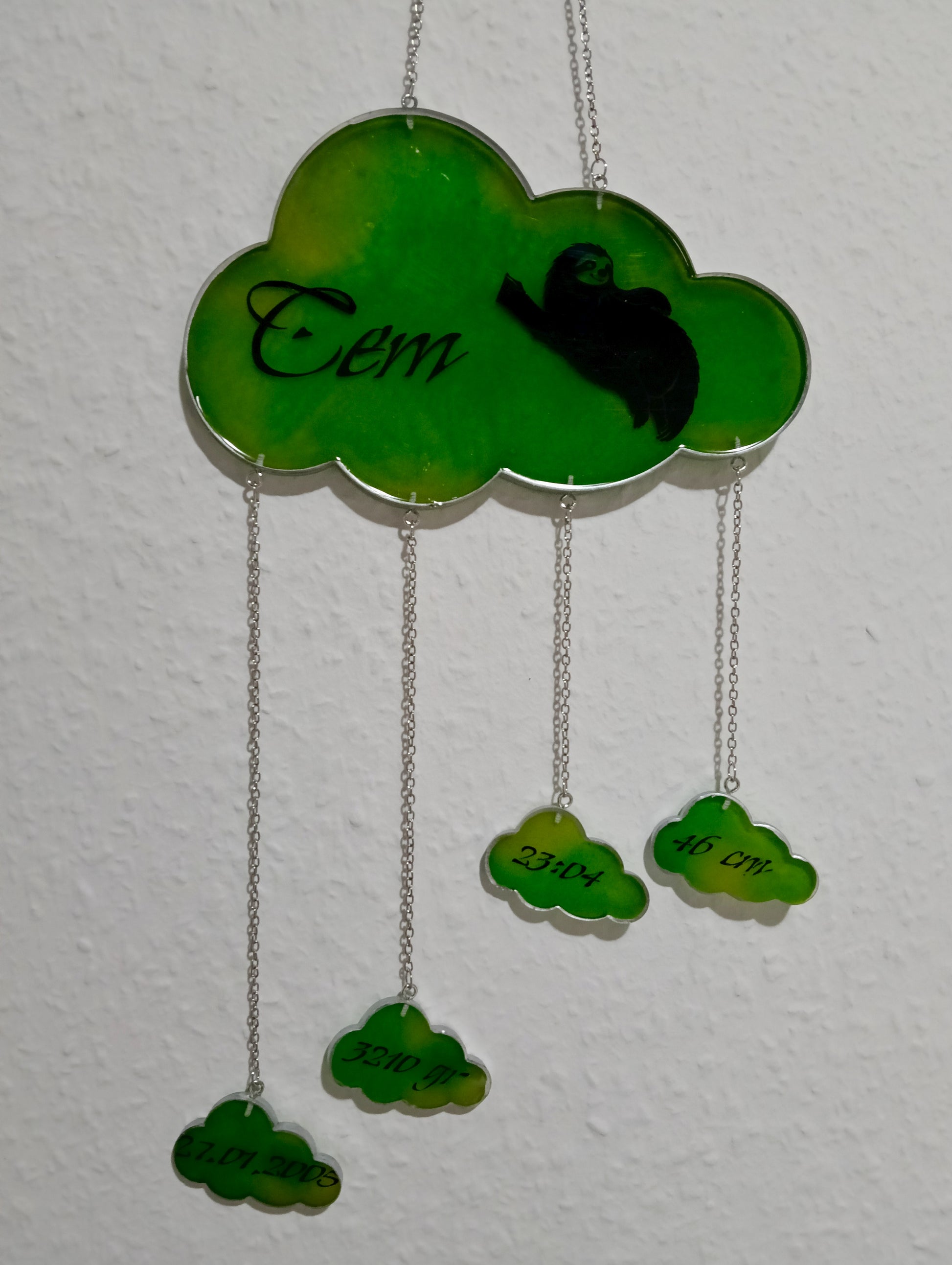 Du kannst dir deine Wolke ganz individuell gestalten, egal ob als große einzelne Wolke mit Bild als Erinnerungsstück oder als Babywolke mit den Geburtsdaten deines Kindes.