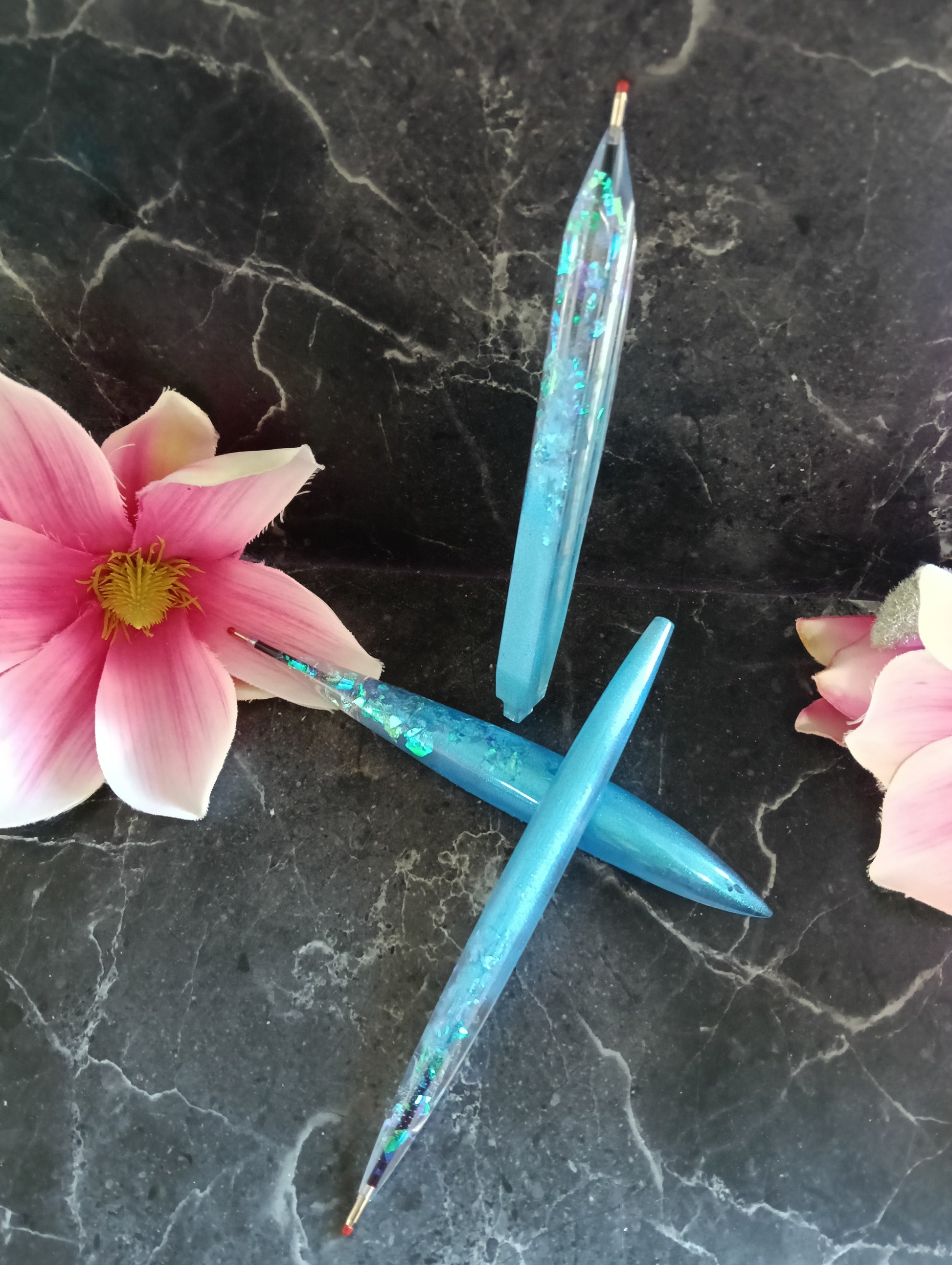 Dann ist das Kugelschreiber-Set im 3er Pack genau das richtige für dich. Mit viel Liebe zum Detail wurden die Stifte aus Epoxidharz gegossen und mit je einer roten, schwarzen und blauen Mine versehen.