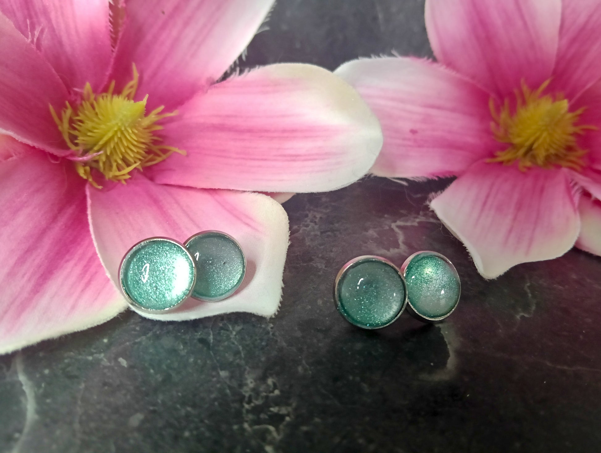 Durch die Glas-Cabochons werden die eingegossenen Farben aus Epoxidharz vor Kratzern und Rissen geschützt und durch den blanken Edelstahl brauchst du keine Angst vor Verfärbungen zu haben.