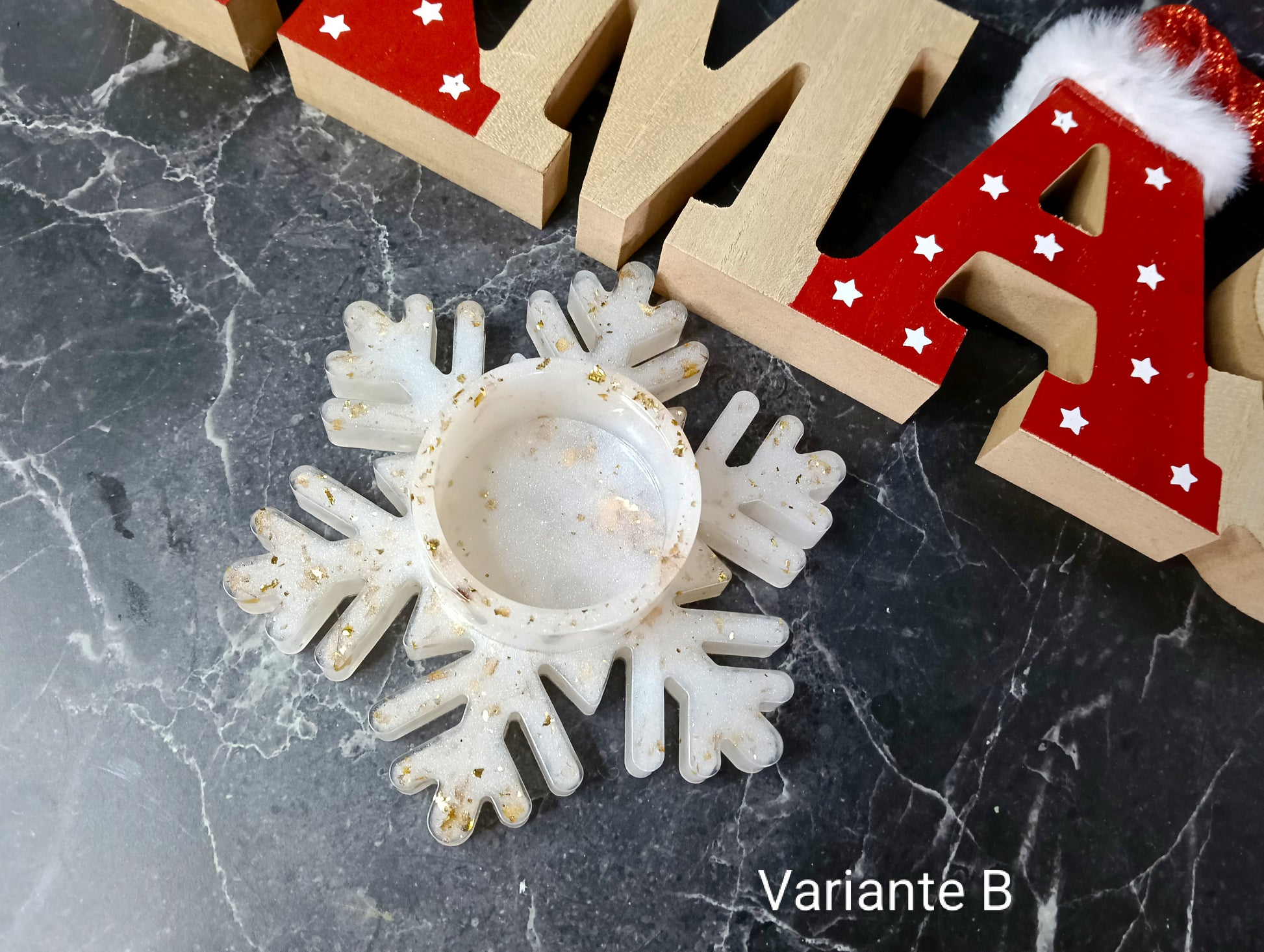 Der etwas andere Teelichterhalter - gegossen aus Epoxidharz und ganz im Stil der Festlichkeit.