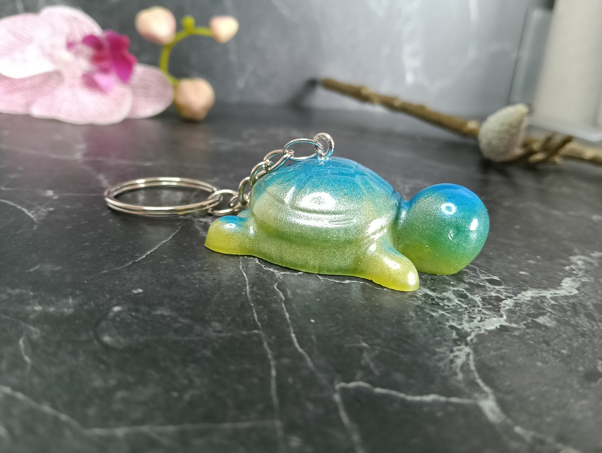 3D Schlüsselanhänger "Turtle" aus Epoxidharz in verschiedenen Varianten.