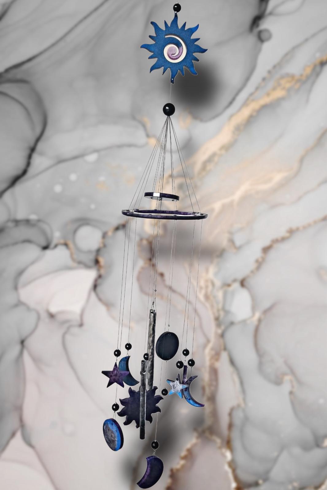 Windspiel aus Epoxidharz mit drei Klangstäben.